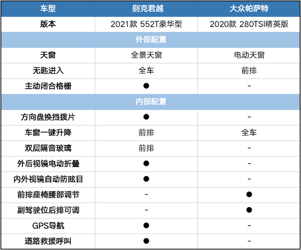 合资品牌中型车入门版值不值得买么?该怎么选呢?我们不妨从2021款君越552T豪华型和帕萨特280TSI精英版这两款车型身上找找答案。毕竟,这两款车型实力相当。