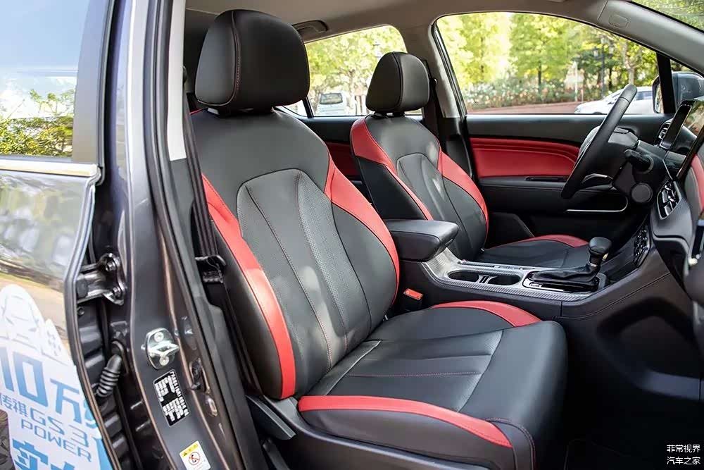 在座椅方面,今天对比的两台车配置相当,都采用了皮质的包裹,GS3 POWER的座椅与内饰同样采用了红黑拼色的设计,在功能上两车主驾支持6向电动调节,副驾4向手动调节,同时两车前排座椅都配备了座椅加热功能。