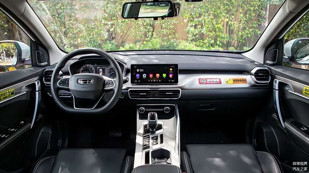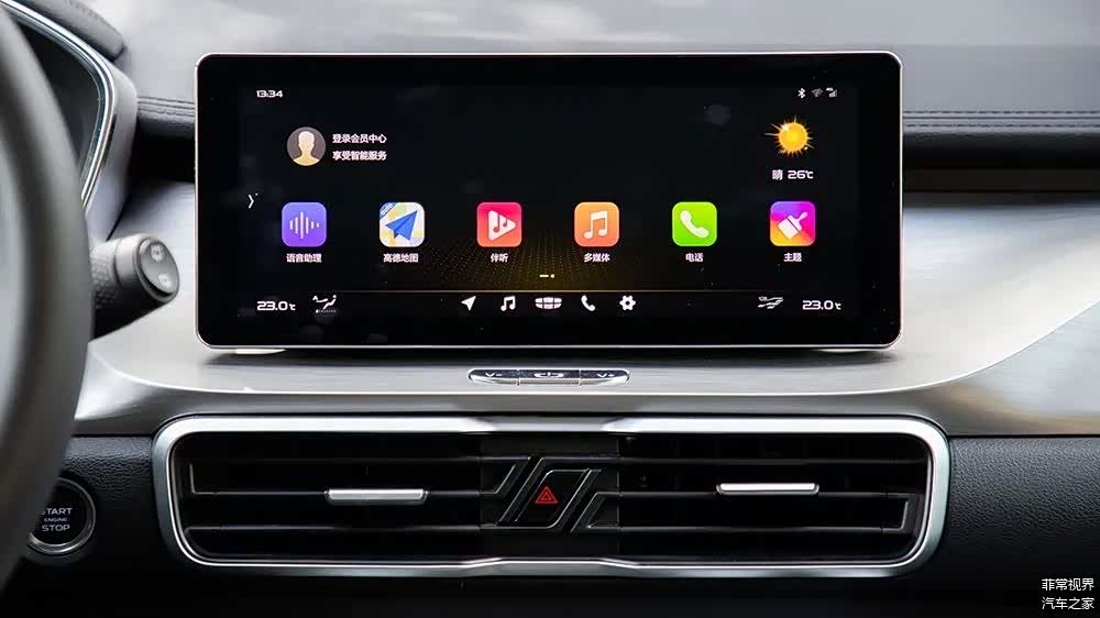 吉利缤越依然采用的是很多车型惯用的悬浮式的中控台设计,中控屏屏幕同样是10.25英寸,不过相较于GS3 POWER,缤越的屏幕看起来会更加的精细一些,因为其采用了较窄的边框设计,同时尺寸比例也会更加的纤细,不过比较遗憾的就是今天参与对比的缤越并没有配备液晶液表盘。