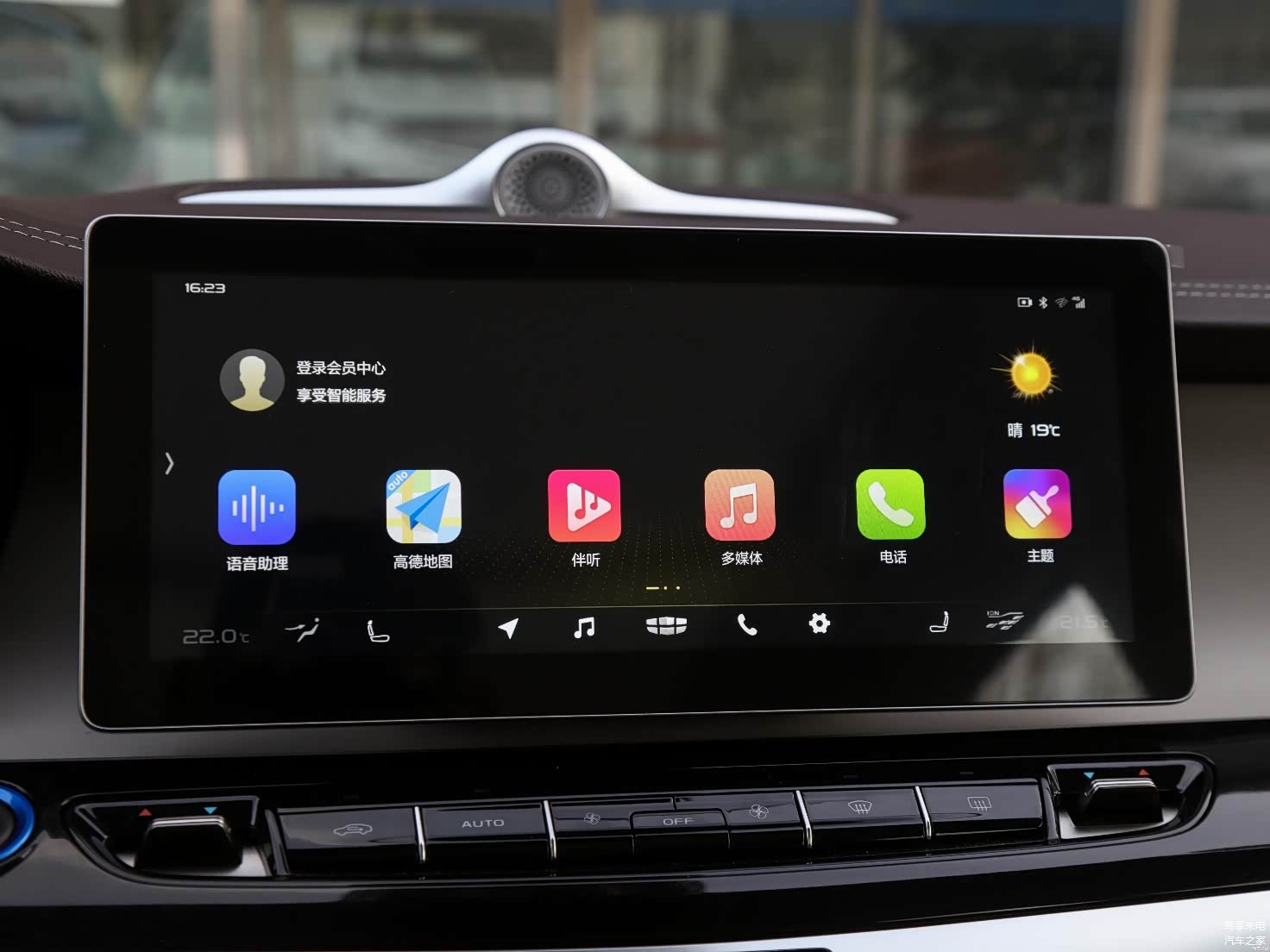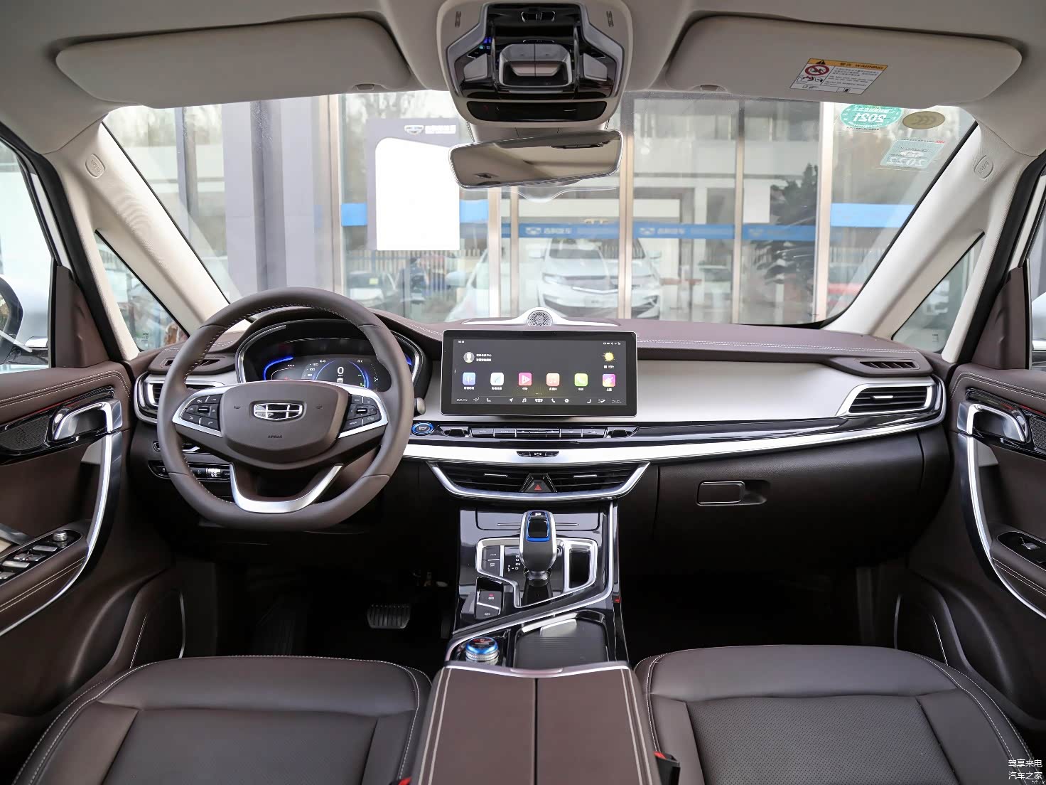 在内饰方面,吉利嘉际新能源的中控台采用了“Full-Vison”环抱式设计,层次感十足,搭配三辐式多功能方向盘、12.3英寸悬浮式中控液晶屏,再加上流光氛围灯,营造出了很不错的豪华感。