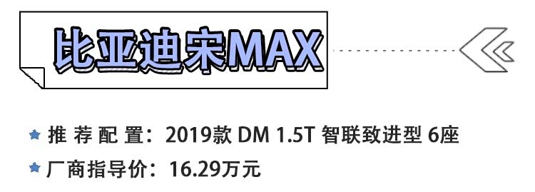 作为国内“市面上加速最快的MPV”,比亚迪宋MAX DM有五款六座版车型,其中入门的11.5T智联致尚型官方指导价才还不到15万元,而次低配的1.5T智联致进型官方指导价16.29万,在配置和性能上都较为均衡。