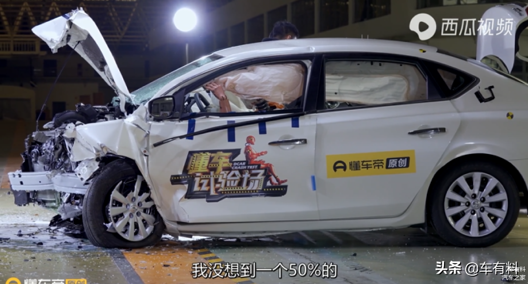 几分钟后,另一个意外情况出现了。根据懂车帝视频报道,碰撞完成后,经典轩逸的车头位置“冒烟”。