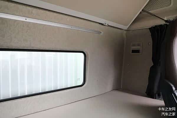 一汽解放J7 8x4 国六厢式载货车采用高顶双卧平地板驾驶室,空间非常宽敞,800mm宽的卧铺区域也是又大又宽,并且在下面还带有一个大容积的储物格。