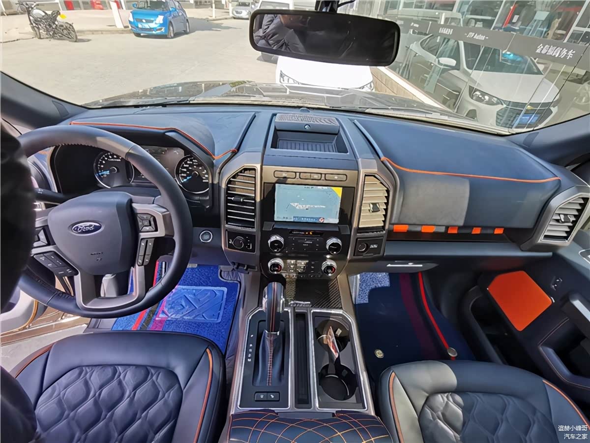 配置方面,福特F150勇猛者 3.5TT 双涡轮增压 (七座)配置: (比17款,多翻毛皮顶,后排天窗,咖色内饰)驾驶舱DVD导航,前雾灯,倒车视频影像,后雾灯,定速巡航,高位刹车灯,行车电脑显示屏,真皮正副驾驶座椅(带电动调节/通风功能),后视镜电动调节。第二排真皮电动独力座椅:后视镜记忆 (电动调节/加热)