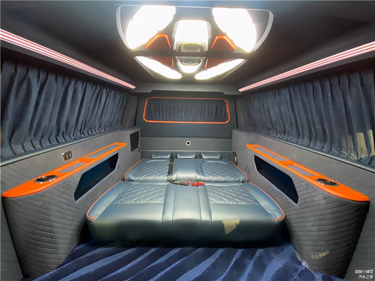 2021款 F-150福特勇猛者平顶内部铺陈进口柚木地板,二排设置了两张带独立腿托的CEO级航空电动按摩座椅,总体空间更宽广,装修更豪华,氛围更精奢,适用于商务接待或家族旅行而采用不隔断设计的F-150福特勇猛者平顶车型乘客舱看起来就简约了许多,毕竟主打操控对内饰并没有那么高的追求。但不论座椅舒适度、整体空间感对比市面上一些竞品SUV优势还是很明显的。