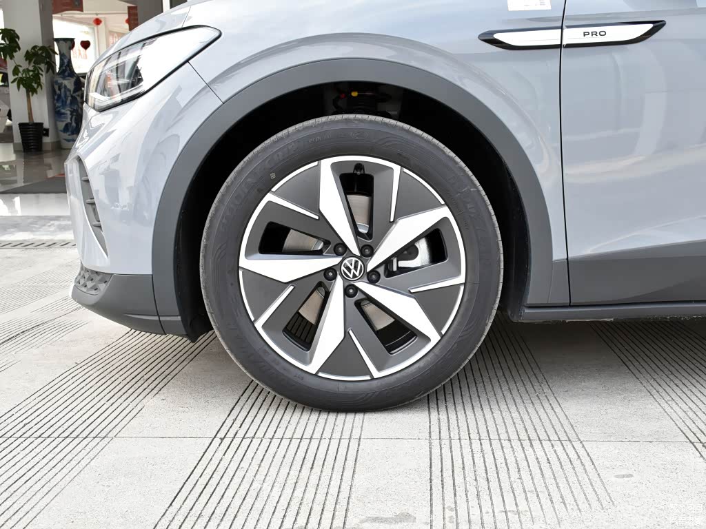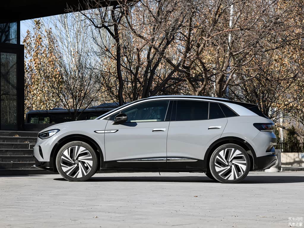 车身侧面,ID.4 CROZZ的整体造型偏向溜背样式,其长宽高为4592/1852/1629mm,轴距为2765mm,风阻系数仅为0.28cd,加上悬浮式车顶、半隐藏式门把手以及C柱位置的银色饰条等元素,都增加了车身侧面的设计感,很容易获得年轻人群的青睐,并且从中配车款开始,ID.4 CROZZ采用了20英寸以上的多辐式轮毂,进一步增加了整车站姿的挺拔感。