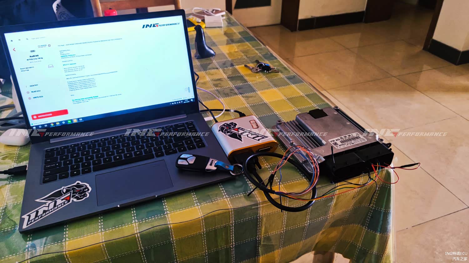 收到程序后,技术总监经过初步审核和德国技术人员共同确定调校方案。根据环境、油品、大气压力、车况等,对点火时间、点火角、点火脉宽、进气压力等多个参数,重新优化调整。调校时间根据实际情况或有不同,注入德国ING Performance特调程序。