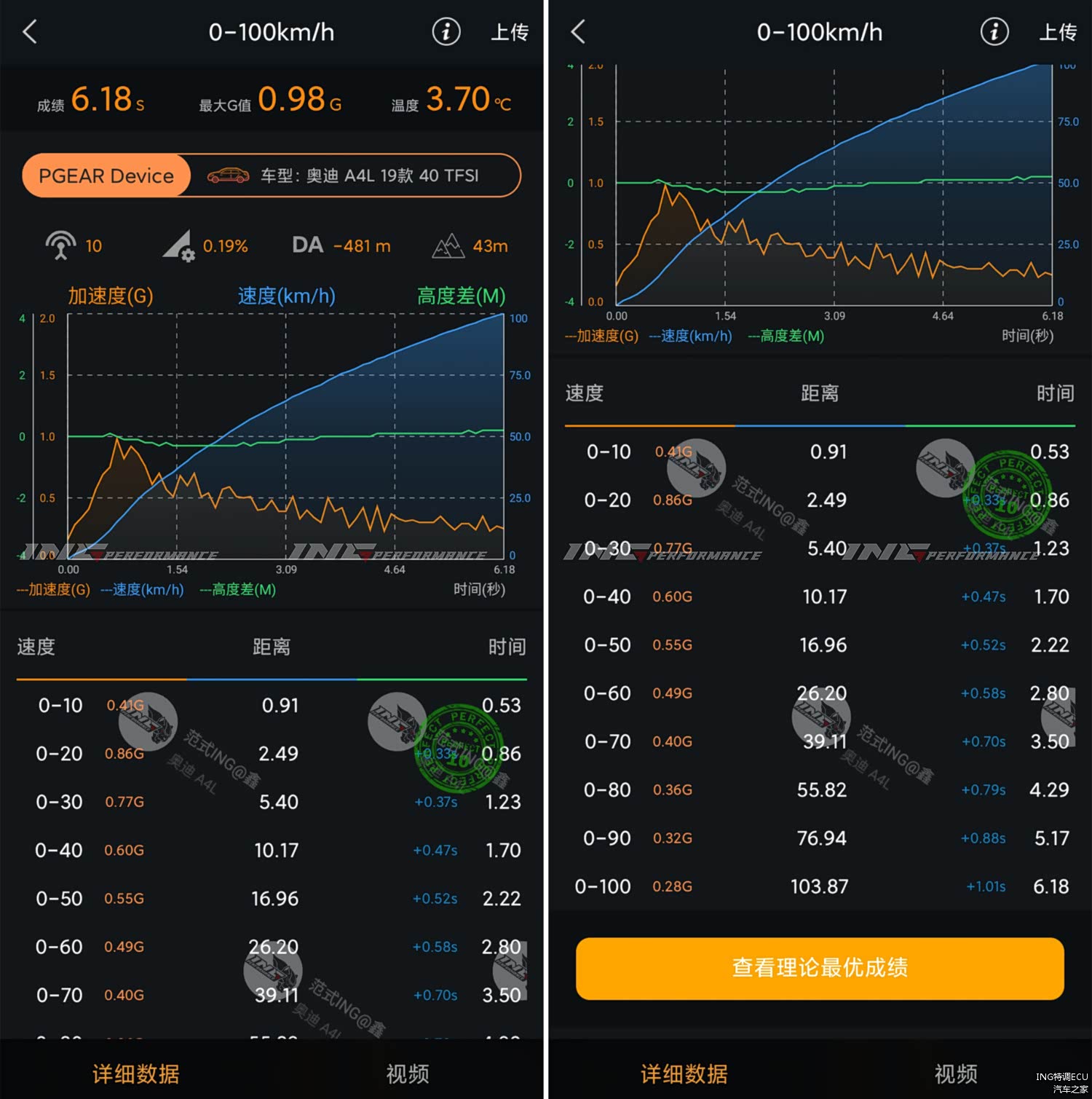 首先附上20款奥迪A4L 40TFSI升级前后的数据对比—