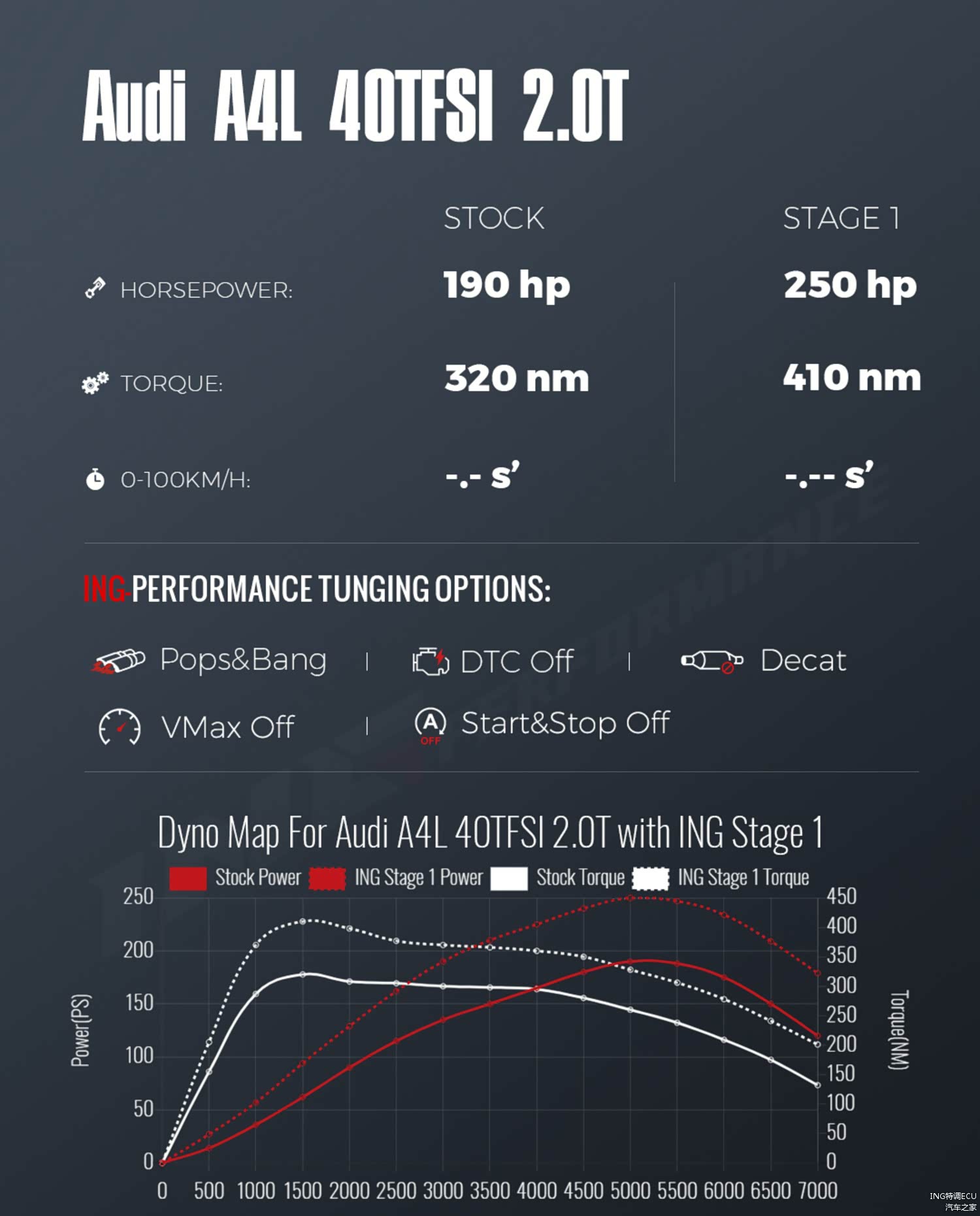 一阶数据:马力250Ps 扭矩410Nm。