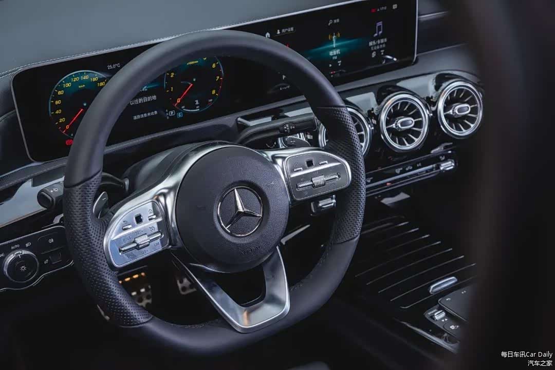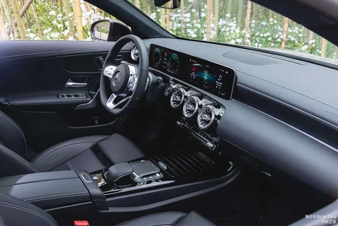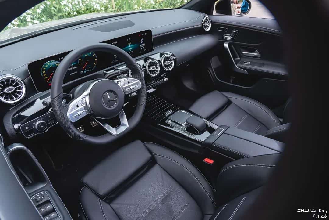 全新CLA采用了与新A大致相同的内饰设计,包括双10.25英寸大屏的全液晶仪表+中控屏、造型类似于飞机引擎的空调出风口、最新款平底式多功能方向盘,以及最新的MBUX人机交互系统等。而与奔驰新A不同的是,为了契合CLA级运动型轿车的定位,我们这台试驾车还装上了桶形座椅。