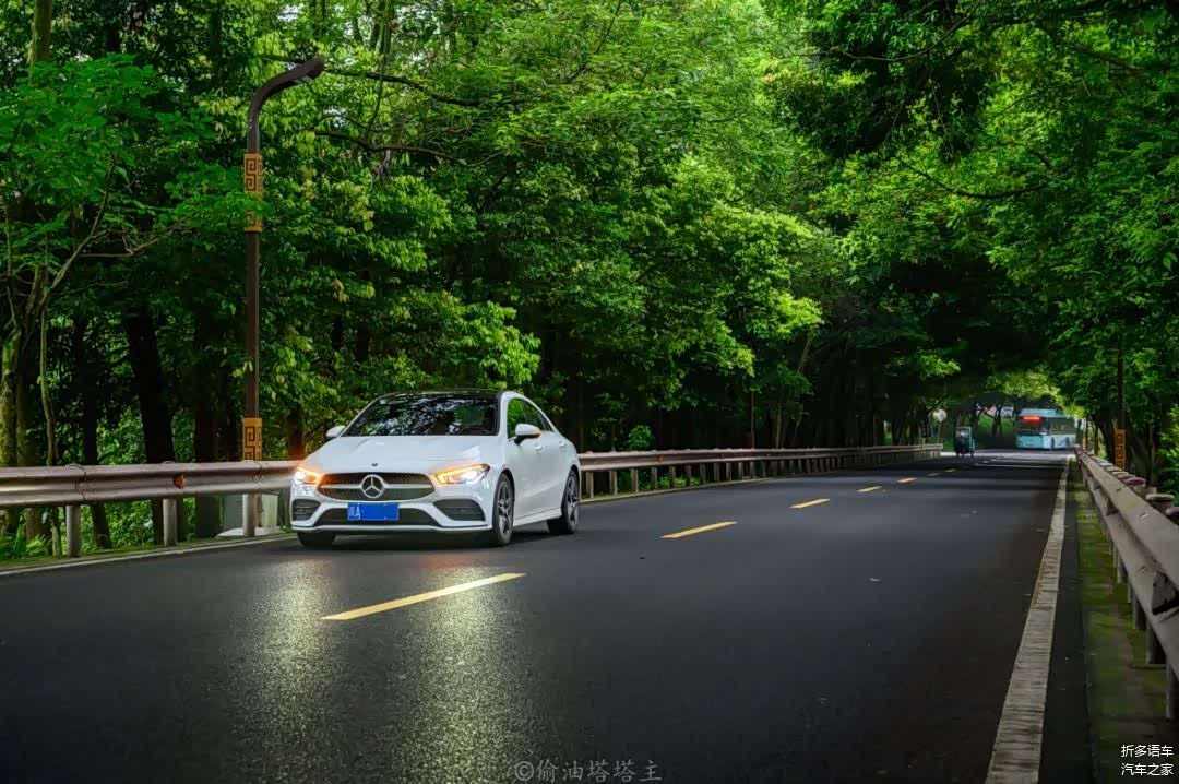 小小200,乐趣真的有。CLA标配AMG套件,悬挂是官方声称的“低置舒适性悬挂”,我开着却感觉他在运动和舒适间找到了一个平衡。讲求一定的路感下,又给到了你一些柔韧的高级感,悬挂处理整体略硬朗,绝大多数时候都能干净处理,特别是处理连续碎颠簸,有V60约八成功力(没看过的朋友可搜索往期V60文章)。
