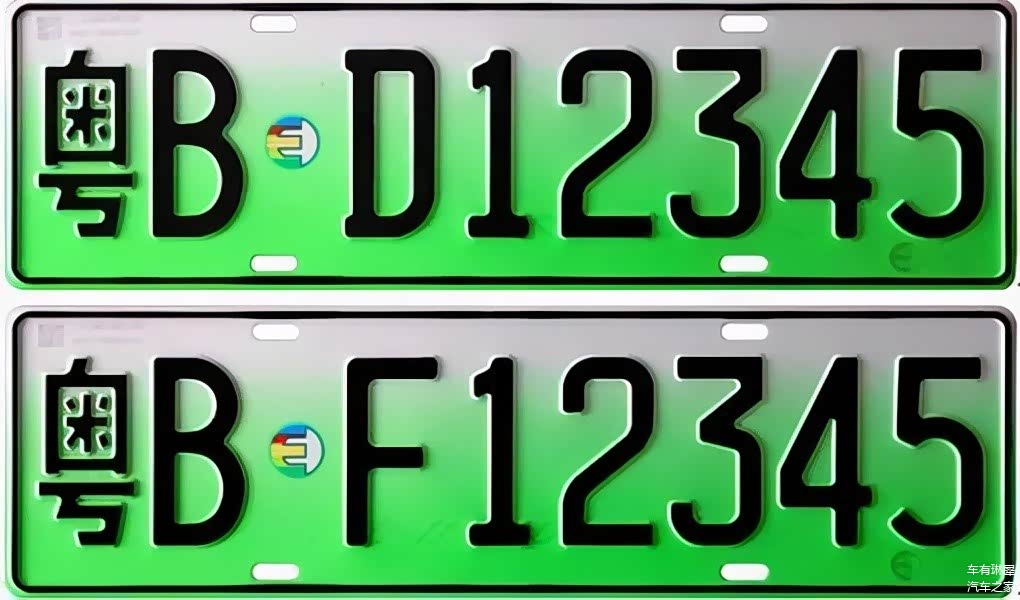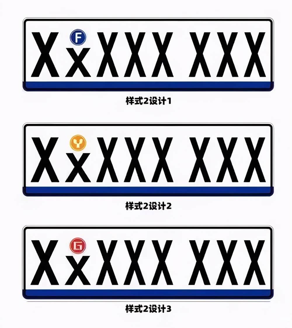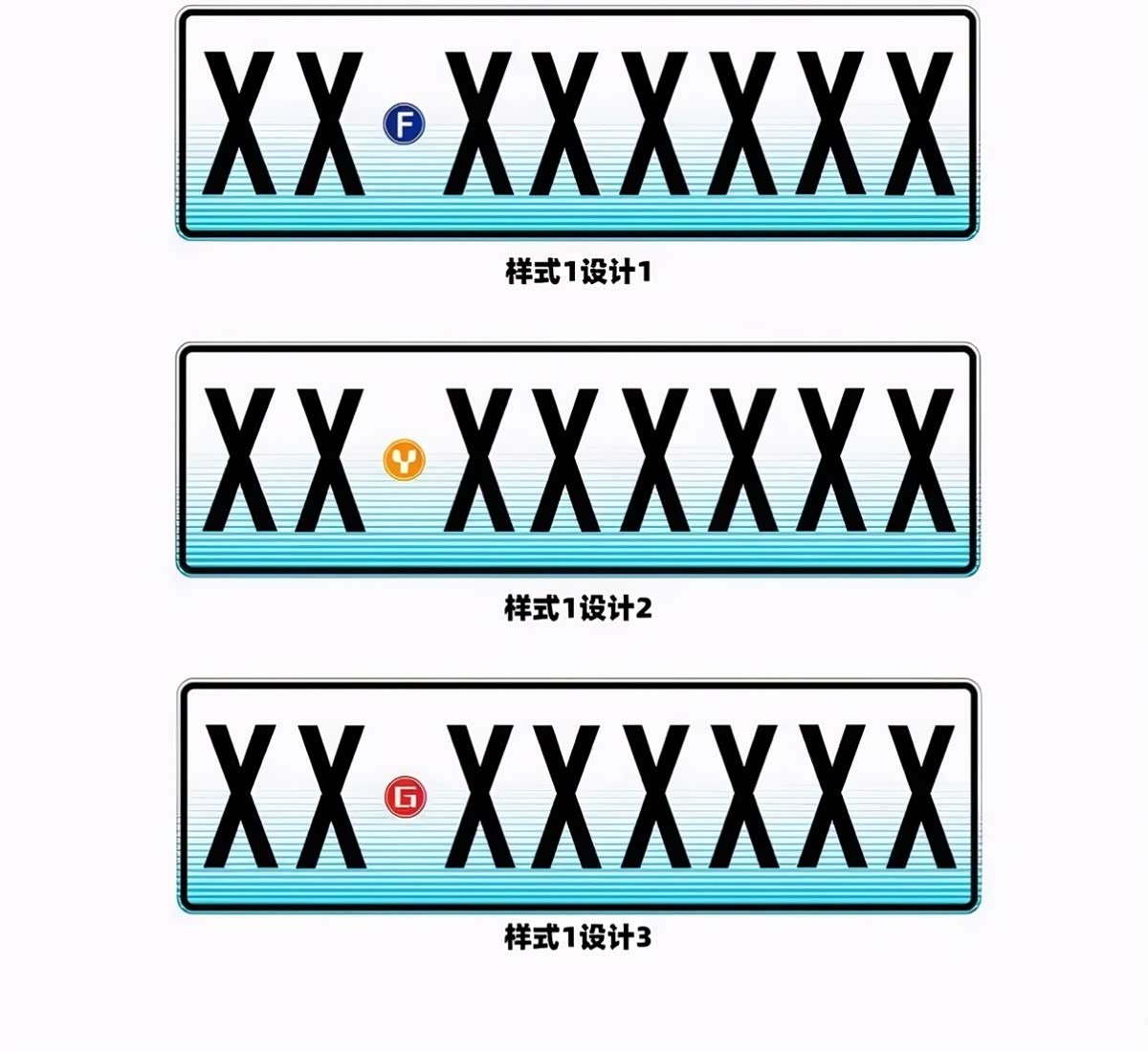 疑似新款的新能源牌照与现款都采用6位数,车牌底色变为由上而下的浅蓝白渐变色,并且在代表城市字母的上方有F、Y、G圆形图标,颜色也各不相同,可能分别对应非运营、运营、国家机关三种车辆类型。
