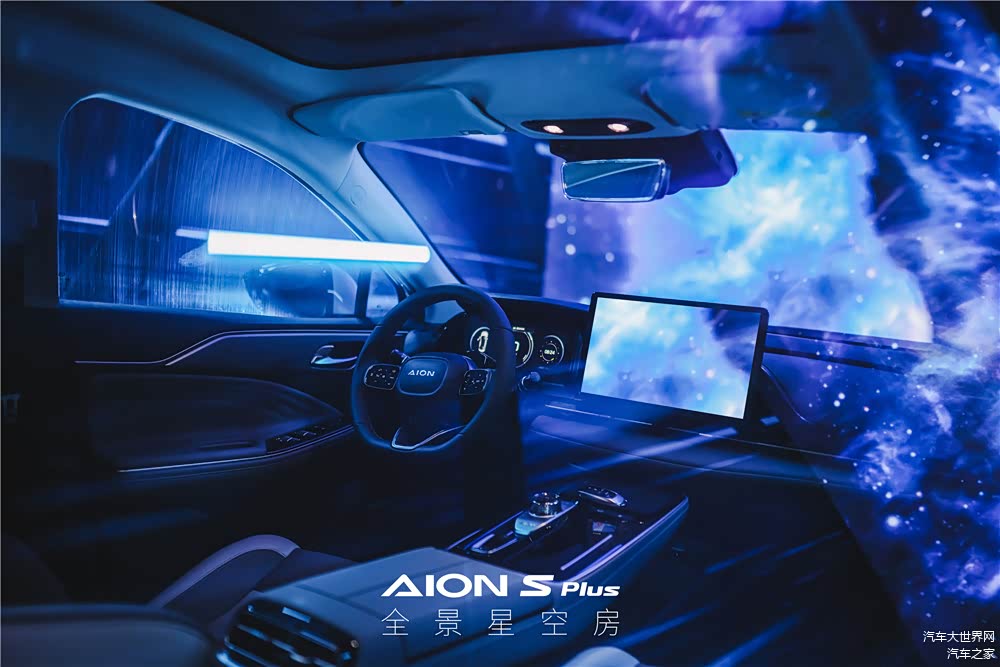 值得一提的是,AION S Plus采用了全球首发第三代柔性电致变色技术全景天幕,这不仅是全球最大的全景变色天幕,面积达1.9㎡,也是全球变色最快的天幕,全范围变化时间小于2分钟/平方米。同时采用了双银镀膜+Low-E隔热玻璃,紫外线隔绝率大于99.9%,雾度低于1.5%。
