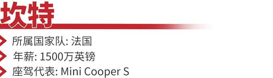 坎特被誉为英超最低调巨星,这一点从其座驾也可以体现。坎特2016年转会到切尔西,从那时起,他的座驾一直都是这台价值才2万英镑的白色Mini Cooper S。即便之后这台车经历事故,坎特都没有舍得更换。直到2020年,才有媒体拍到坎特换上了新座驾——一台奔驰,不过具体型号未知。纵使拿着数千万年薪,但坎特简朴的生活习惯还是相当值得我们学习的。