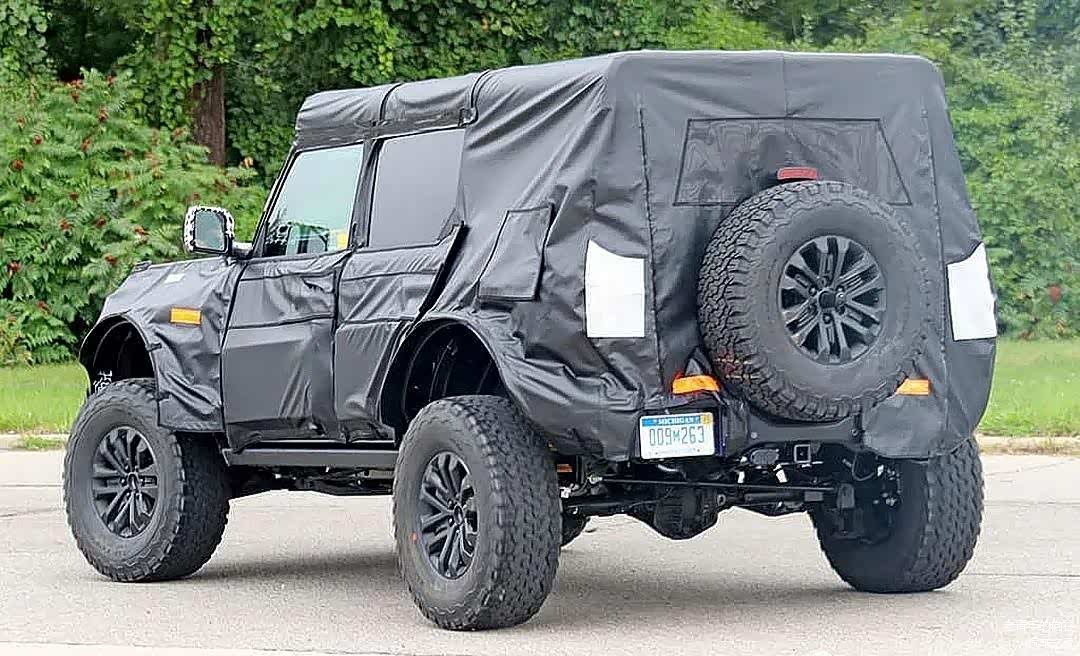 车身外观设计方面,Bronco Warthog 的前后翼子板将进一步抛宽;前脸造型或许会加入更多经典元素,与普通版有较明显的区分;车尾改动不大,越野迷们最爱的「书包」(外挂式备胎) 可能会列为标准配置。