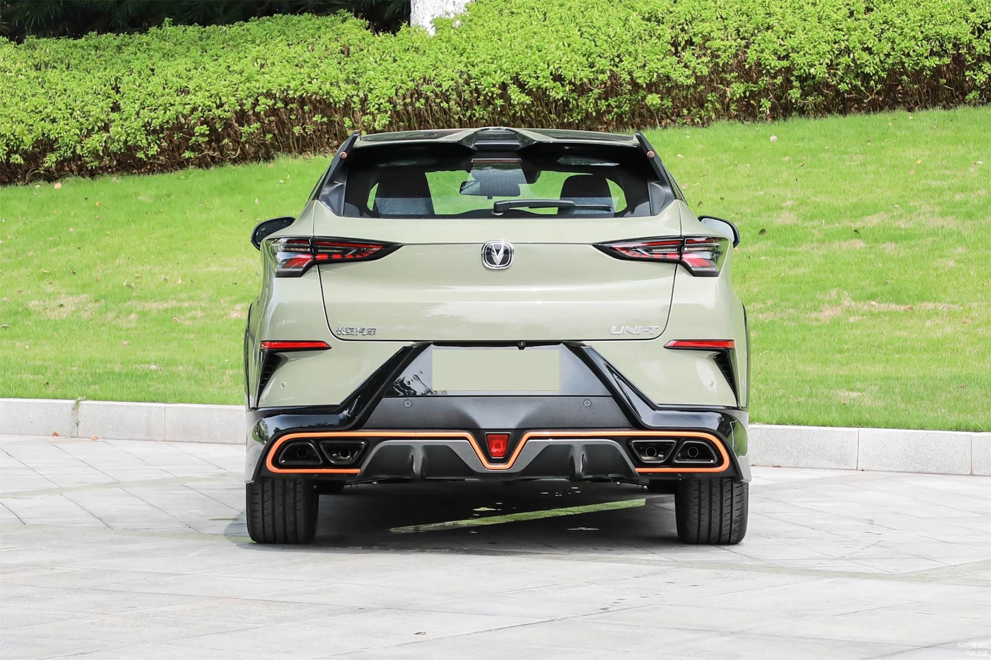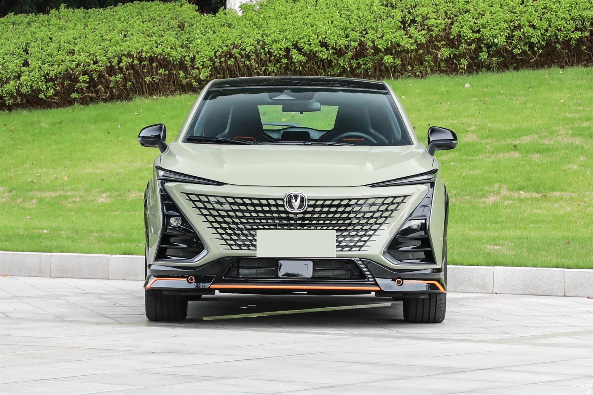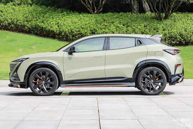 新款 长安UNI-T(图片 | 参数 | 询价)“机甲绿”在外观方面,整体轮廓延续了老款车型的设计元素,夸张的大嘴配合车身同色的装饰点缀,很有视觉冲击力,大灯的设计也是比较狭长凌厉,前包围也经过运动化的处理,非常激进,包围下方还提供亮黑装饰和橘黄色装饰条,增加了车头的视觉效果