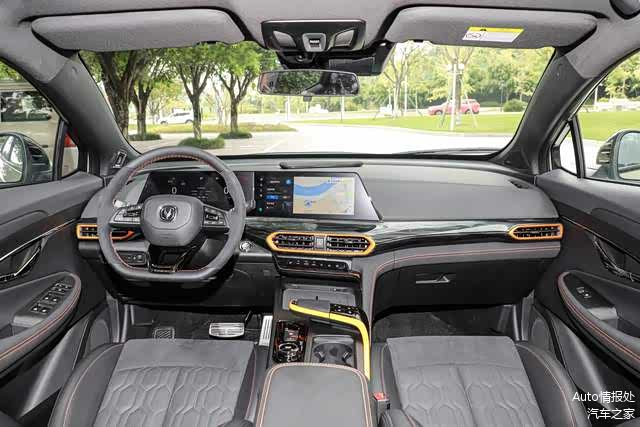 新车在内饰方面的设计,同样非常年轻,前卫,内饰还提供红色缝线和橘黄色装饰条,比较年轻,前卫,很有战斗范,方向盘采用平底式设计,符合运动车型的调性,连体式液晶屏幕也是当下非常流行的搭配,很有科技感,内饰还提供翻毛皮材质和菱形纹路座椅,很有档次感