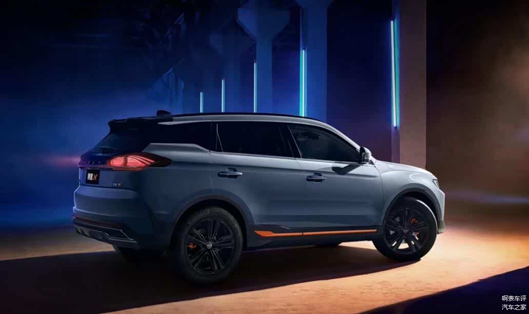 车身侧面其实与博越的造型上并没有变化太多,不过细节上更显运动,比如侧裙上加入了橙色的元素搭配,显得比较活力运动,再配合黑色的五幅式大轮毂,运动气息满满。另外,新车还提供了5款颜色可供选择,分别为疾风银、神隐黑、飒爽白、凡灰、逍遥蓝。