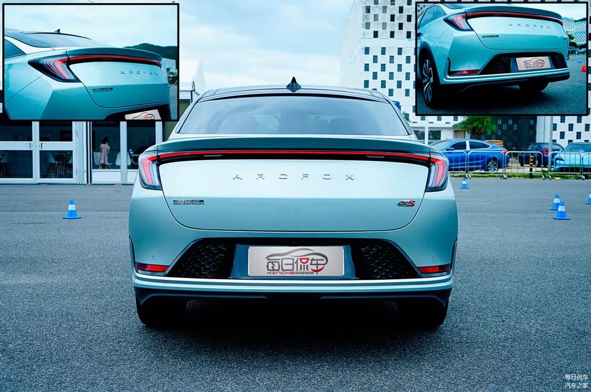 车尾的高度很充分,再加上尾盖边缘冲压的尾翼外凸很强烈,带来强烈的“翘臀”感,当然有利于降低风阻。半环绕贯穿式LED尾灯灯带拥有出色的辨识度,而且与车头镀铬条也进行了呼应。牌照框位于保险杠内部,外围采用了黑色三角元素装饰,与车头格栅又实现了良好的呼应感,因此我们说它在细节装饰考虑地很周到。