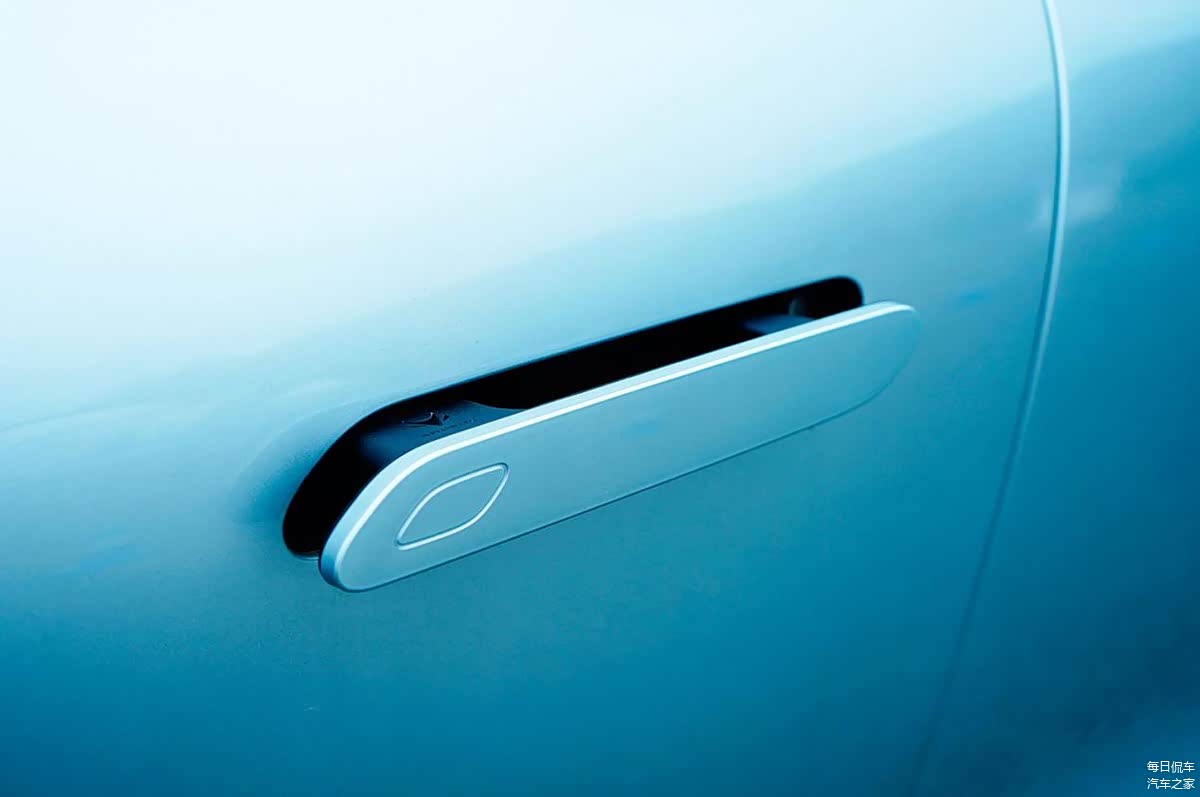 车身同色门把手采用隐藏式弹出开启,全系标配的前排无钥匙进入模块也是平面化布置,看起来比较整洁。