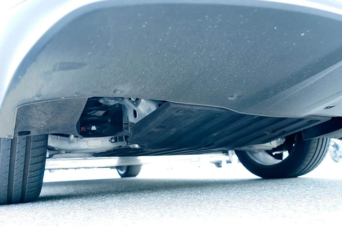 底盘方面,采用前麦弗逊独立式+后多连杆独立式的悬挂组合,从图中可以看到,后悬挂下摆臂采用了铝合金材质来降低重量。车底包覆的非常平整,保证了底部气流的平顺。