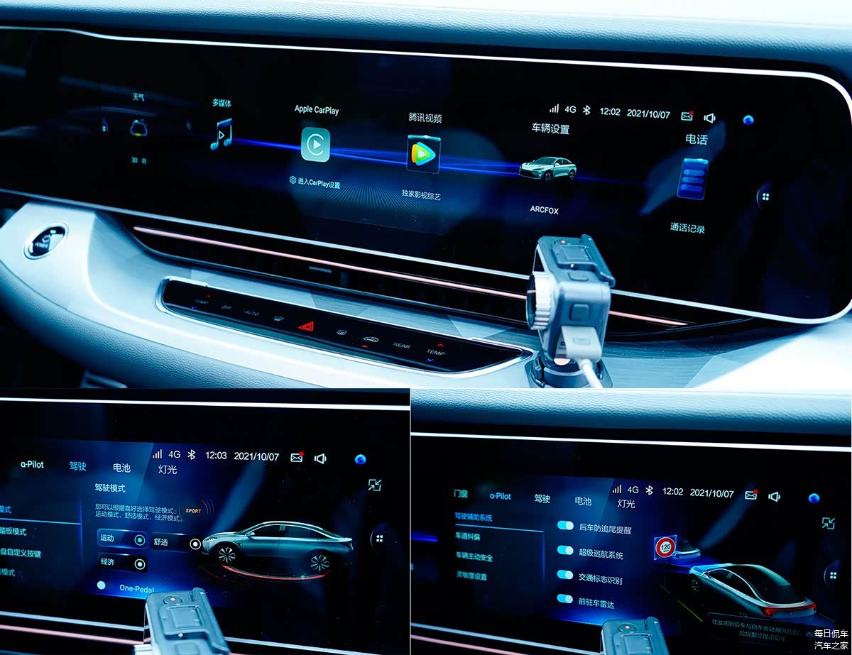 20.3英寸中控屏同样为全系标配,这块屏幕又细又长,右侧部分距离驾驶位较远,使用起来不算方便,但它的优势是可以实现分屏,分为左右两块屏幕,其中右侧屏幕可以成为副驾驶的专用屏,并可以将信息投射到左侧,副驾驶可以帮助驾驶员来完成一些设定,还是有实际价值的。车机系统的逻辑很清晰,各功能分布也很容易查找,基本上所有硬件都可以通过屏幕控制,集成化相当高,不过我们发现屏幕的流畅度不算高,触控也不算灵敏,这对于电动车而言不太应该。另外,华为HI版还将配备鸿蒙OS系统,该系统将融入更多的应用生态,网联的功能将更加丰富。