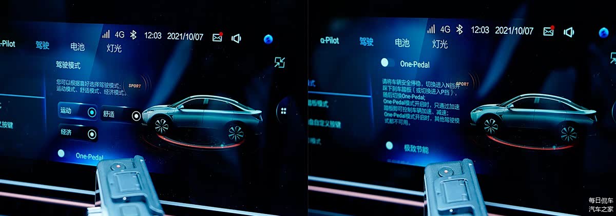 本次我们在封闭场地内主要使用的是运动模式,这台车还有舒适和经济模式可选。当然也支持单踏板控制模式,还是极致节能模式。另外,达到L2级的驾驶辅助系统功能其实也很强大,但我们也没有机会试驾,这些只能有机会再给大家分享了。