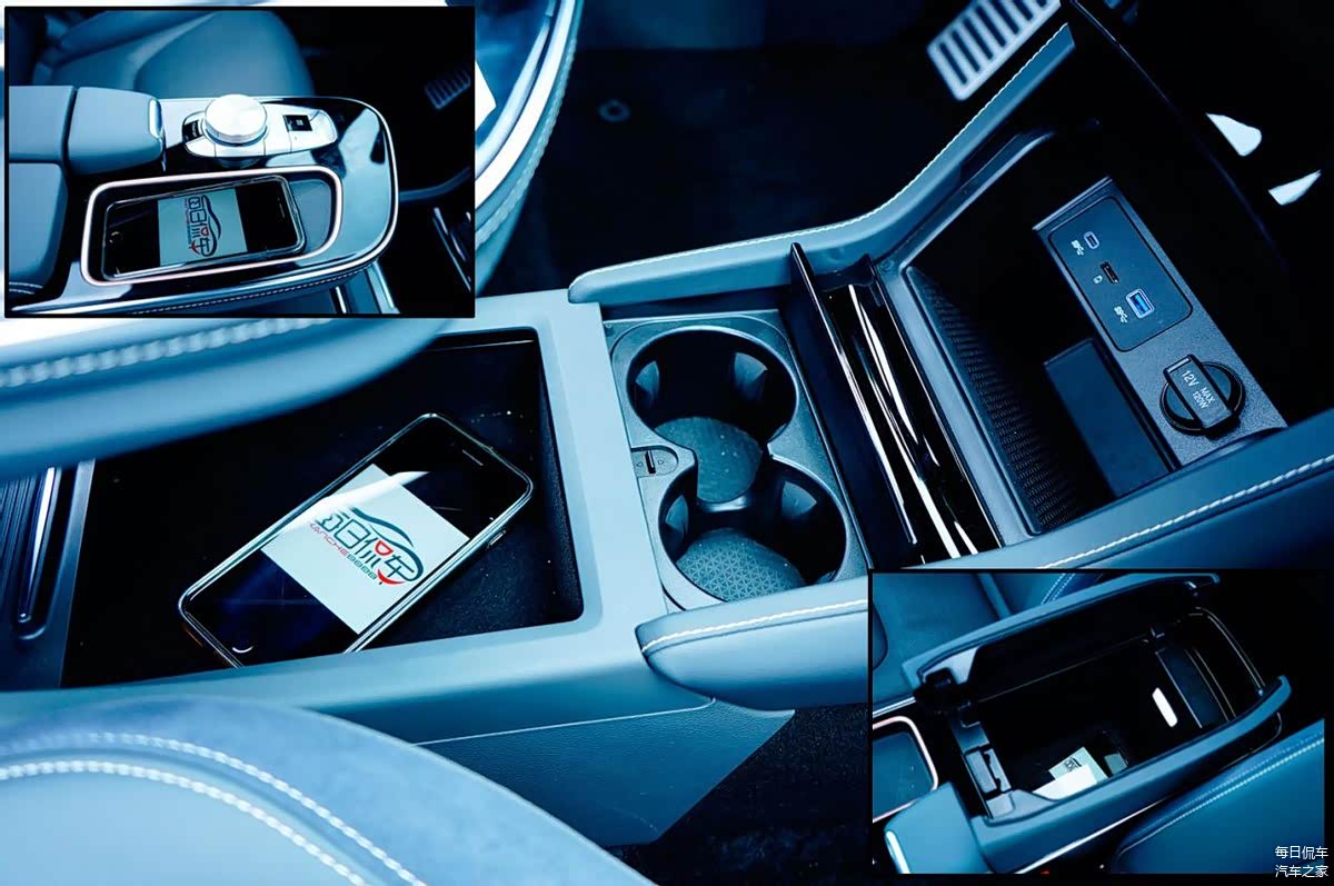 电子怀挡的布置让中央双层通道成为储物专用空间,拥有出色的空间利用率,而且让腿部活动余地更大。下层通道前方储物格内置SD卡插口、Type-C接口、USB接口,中间是双杯架,后方是扁平的储物空间,全部都带翻盖,可做到完全平整。上层的扶手箱平台右侧是手机专用储物格,左侧则是金属质感的实体控制键,包括自动泊车、自动驻车、电子手刹和多媒体等功能键。后方扶手箱开口方正,深度可观,有相当的装载能力。