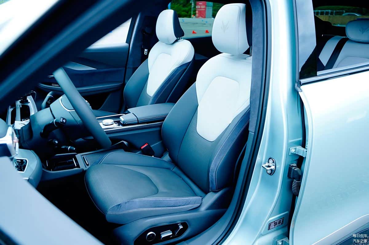 除入门车型(仿皮)外,其余车型前排座椅都采用了皮/翻毛皮材质混搭包裹,黑色部分为皮质,肩部米色为翻毛皮,双色搭配看上去更高级感,还能为身体提供更好的摩擦力。座椅填充物较为饱满且有良好的形变量,坐垫长度充足,靠背的侧向支持也没问题,如果能增加电动腿托就更显高级了。功能方面,主驾驶座椅支持前后、靠背、高低(4向)和腰部(4向)电动调节,副驾驶支持前后、靠背电动调节。前排座椅还支持加热、通风,主驾驶位还有记忆功能,总体上比较完善。