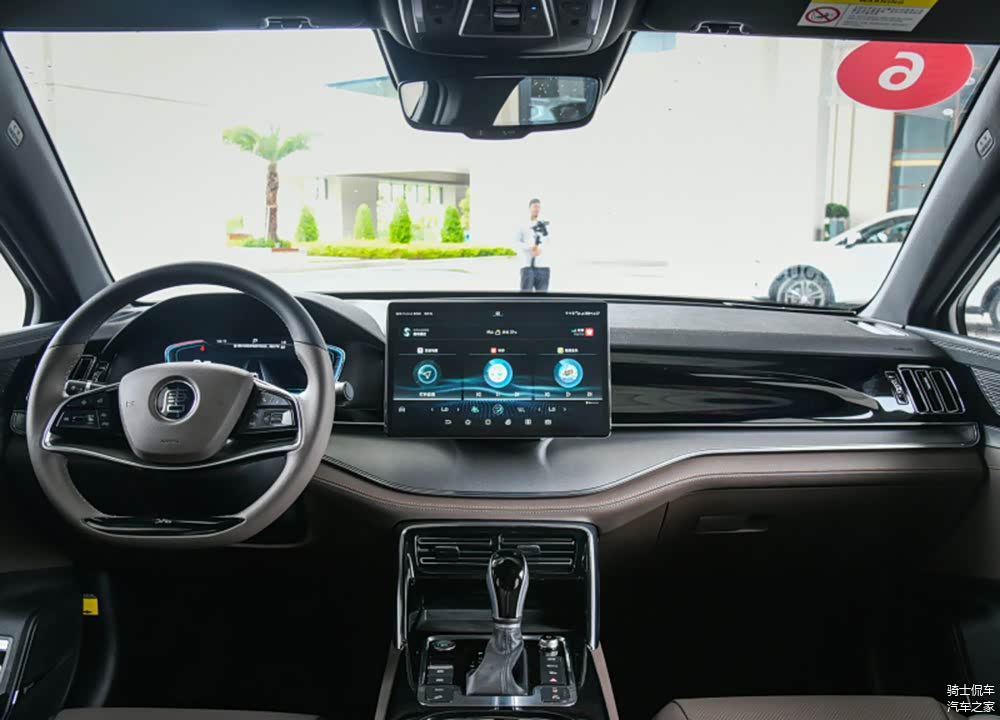 内饰方面,悬浮式12.8英寸屏幕类似于自家电动汽车的屏幕呈现方式,悬空的效果科技感不错,整个界面集中了操作功能,物理按键较少,支持车联网与OTA升级。配置方面,360度全景影像、全速自适应巡航等,此外配备12喇叭的扬声器。