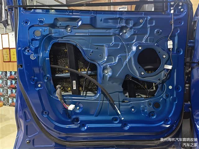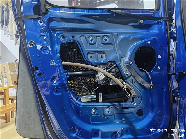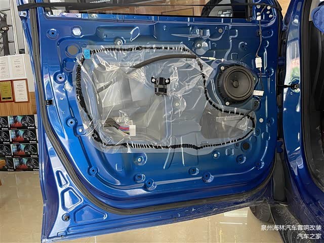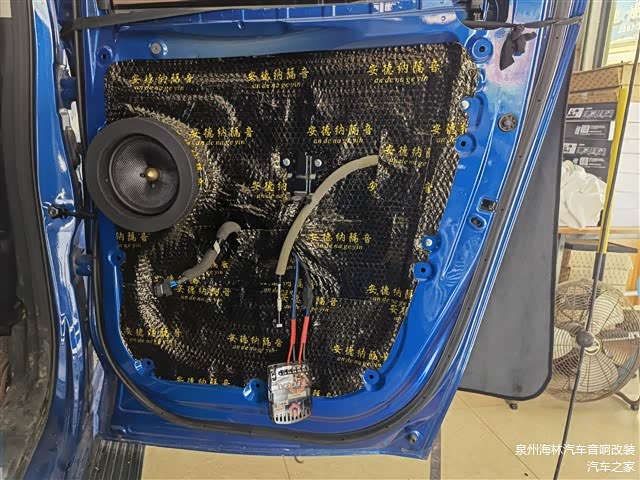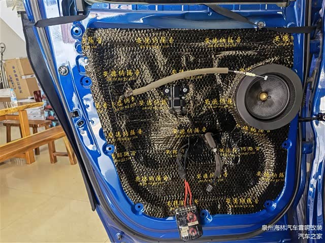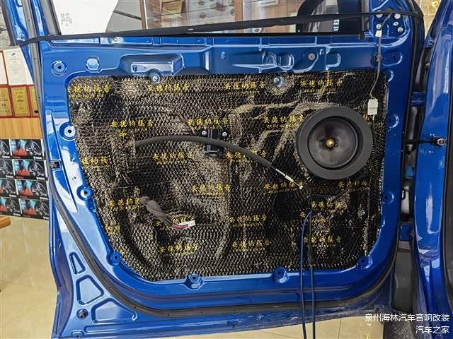 改装汽车音响少不了对原车隔音进行改善,首先用安德纳隔音对四门进行双层隔音处理,增强门板刚性,减少噪音入侵,提升车内静谧性。