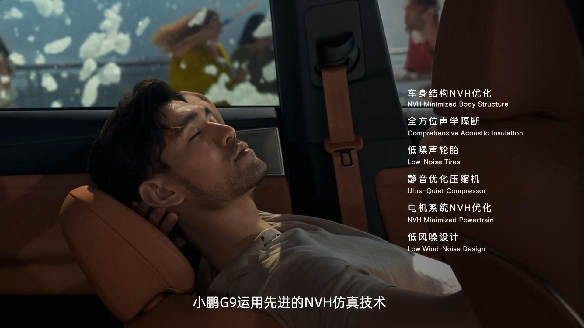 值得一提的是,在NVH方面,小鹏G9也用尽了心血,整车采用26块空腔隔断、全地板重层隔音、44处吸音棉来进行隔音,甚至就连21英寸轮胎也采用了Acoustic静音技术,而在经过多重调校之后,小鹏G9在静态环境下车内噪声可以精准地控制在35dB以内,直接做到了媲美百万级豪车的静音水平。