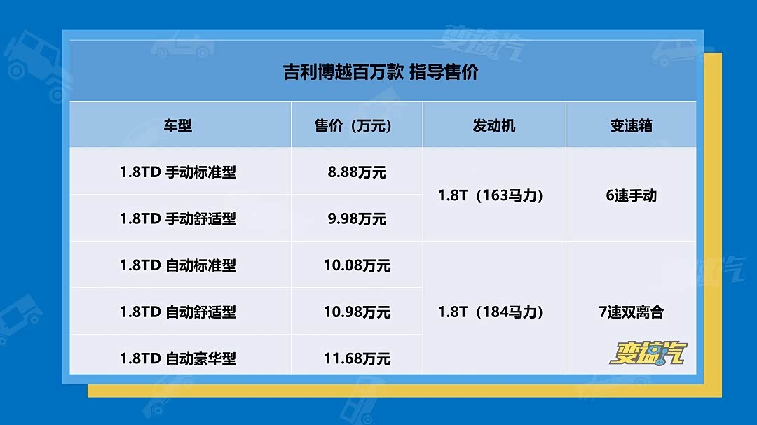 言归正传,全系共5款车型,售价8.88-11.68万元。搭载的1.8T发动机有两种调校,163马力的低功率版本匹配6速手动变速箱,184马力的高功率版本匹配7速双离合变速箱。