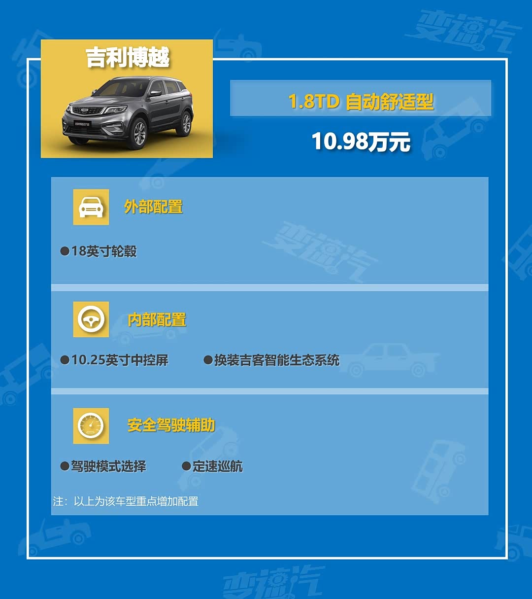 然后,我们来说说9.98万元的1.8TD 手动舒适型,相较手动标准型贵了1.1万元,配置得到显著提升。此外,这款车型还可以花2000元选装吉客智能生态系统,智能互联体验将得到极大的改观。手动舒适型升级的都是日常用车的痛点配置,想买手动挡车型选它就好。