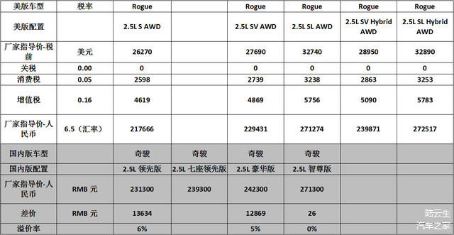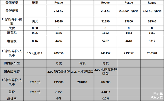 Rogue和奇骏的价格对比见下表(平均溢价率-3.5%):