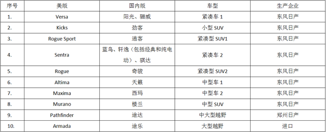 本文为价格中美对比的第三篇,日产主要车型价格中美对比。本次比较的车型如下: