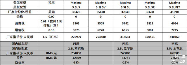本次笔者对比了日产主要乘用车在中国市场和美版市场的价格。有这么几个发现: