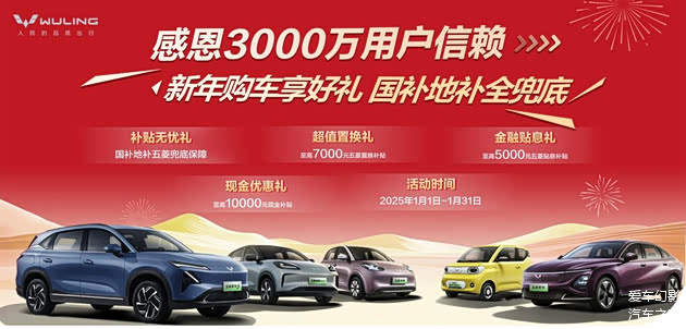 首先,五菱为消费者提供了“补贴无忧”的政策。在2025年1月1日至1月31日期间购买五菱汽车的用户,无论国家或地区的补贴政策如何变动,五菱都会承担补贴差额,确保消费者能够按照最新的政策标准享受到补贴。也就是说,用户可以放心购买心仪车型,无需担心因政策调整而错失优惠。