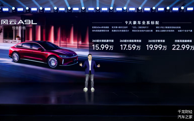 新京报讯(记者林子)6月26日,奇瑞风云A9L正式开启预售,新车预售价区间为15.99万元-22.99万元。奇瑞汽车股份有限公司执行副总裁李学用在现场介绍,预售开启前,风云A9L已获53565台盲订订单。