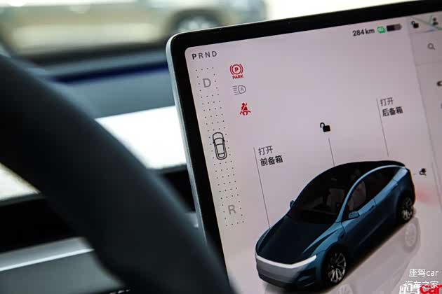 说完了静态,我们就要把车开起来了。与老款Model Y相比,新款车型的操作方式也与焕新Model 3一样进行了大胆的变革。它将雨刮器、大灯开关、摄像头等功能全部集中到了方向盘上,只是由于用户反映的声量过大,转向灯并未再做成按键式的,而是恢复成为拨杆操作,但是是电子式拨杆。我想对于大部分驾驶员来说,拨杆式转向灯当然要比按键式转向灯顺手,但从焕新Model 3车主的角度来看,按键式转向灯在一段时间过后是能够轻松适应的,且孤零零在左侧出现的一根拨杆在美观度来说也并不好看,所以我并不像大多数人那样有这个要求,只能说特斯拉还是从善如流,非常关注大家的诉求。另外,换挡方式也改为了屏幕式操作,用官方的话术是“指挥官式换挡”,虽然不如实体挡把或拨杆操作便捷,但这是为了蔚来的自动驾驶、自动换挡而设计,也算是有一定的发展意义。
