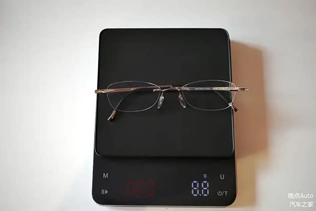 我们称了下两位同事日常佩戴的近视镜重量:纯钛无框镜架搭配蔡司 1.67 折射率树脂镜片的是 8.8g;钛合金和备长炭塑料镜框配上同样规格蔡司镜片的是 20.7g;另一位同事换上近视镜片的雷朋墨镜重 22.7g。