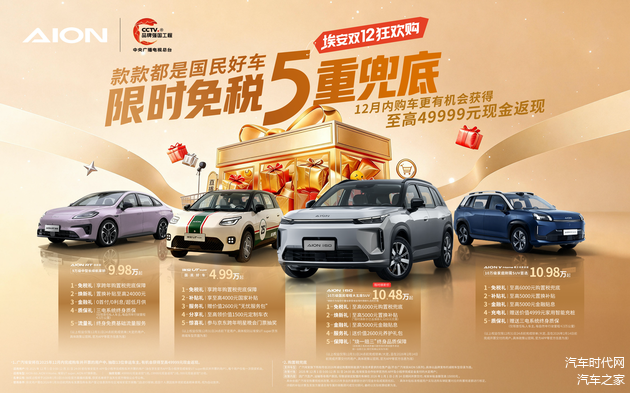 广汽埃安始终以“打造国民认可的好车”为使命,努力成为国民家庭最值得信赖的出行伙伴。此次埃安双12狂欢购,款款都是国民好车,车车都有免税5重兜底,让用户多快好省畅享智能电动出行美好体验。