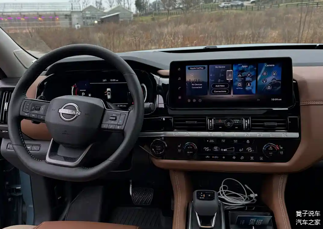 内饰兼顾豪华质感与实用属性,5130/1981/1767mm的车身尺寸搭配2900mm轴距,为三排座椅布局奠定了宽敞基础,提供6座和7座两种选择,完美适配大家庭出行需求。座椅延续了日产“大沙发”的优势,不仅灵活可调,乘坐舒适性更是同级领先。车内采用大面积软质材料包裹,搭配木纹饰板和镀铬装饰,质感出色。新三辐方向盘触感升级,操作体验更优;12.3英寸全液晶仪表盘清晰直观,让驾驶者能快速获取行车信息,科技感与实用性兼顾。