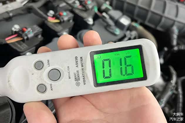 这辆车搭载了一台1.6T四缸涡轮增压发动机,怠速振动数值为1.6米/秒²,还不错。