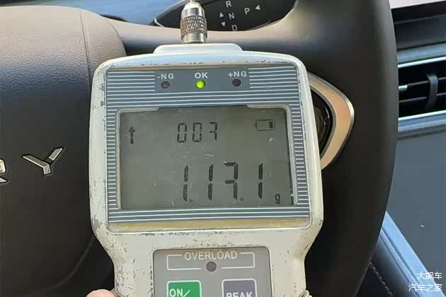 这辆车在舒适模式下,原地转向力为1.131公斤。低速转向和停车入位比较方便。