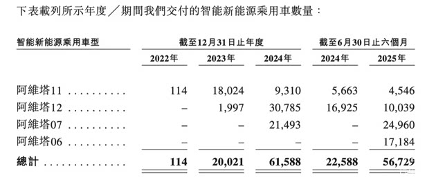 阿维塔自2022年12月开始交付车辆,根据招股书披露,其2023年、2024年和2025年上半年的收入分别为56.45亿元、151.95亿元和122.08亿元。