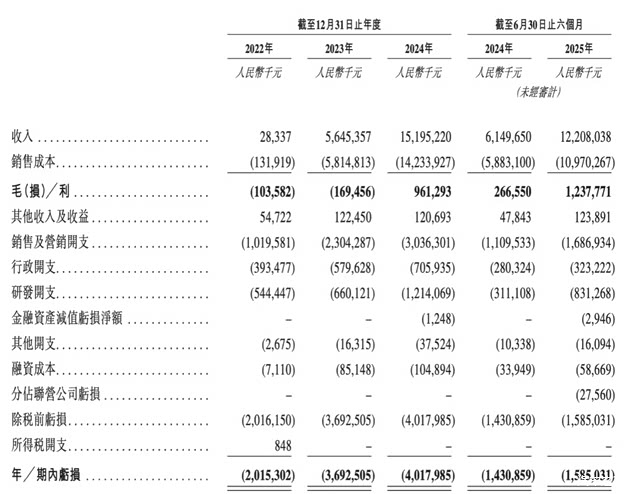 不过值得欣慰的一点是,其毛利率水平从2023年的-3%,提升至2024年的6.3%,并进一步升高至今年上半年的10.1%,突破两位数。