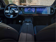 车内部的设计就太有意思了,因为采用了模块化的座舱设计,所以既可以布局四座,也可以布局六座,其中驾驶员的座椅是位于中间的,整个中控台完全都是驾驶员的区域,形成了C字形中控区,彻底取消了副驾功能,方向盘位居中控台的正中央,前方为一整块长方形的屏幕,两侧向里突出形成了两块驾驶员专属的操控台。