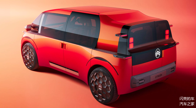 车尾采用了非对称设计的车门和车窗,看上去有点怪怪的,不过尾部的照明系统基本与前脸完全呼应,上下两块堆叠式分体大灯、两侧上下各一条L型转向灯以及中间可发光的雪铁龙徽标,共同组成了尾部的照明系统,不过转向灯和尾灯都布局在了尾部较高的位置,几乎到了车顶,尾灯是直接布置在了后车窗的两侧,这种非主流的设计方式也是令人眼前一亮,最下方依然是集成了车牌以及出气口的后保险杠,从后面看,两侧四个转向灯有点像四个大耳朵。