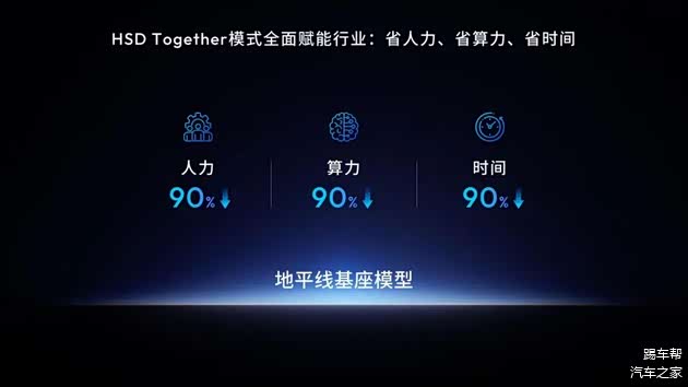 为此,地平线的合作模式持续演进,旨在以更开放的商业模式,助力行业迎接挑战。这次地平线宣布,将其已验证的全栈能力,以全新的“算法服务”模式——HSD Together,向整个行业开放。在此模式中,地平线与合作伙伴在明确分工下深度共创。合作伙伴可以聚焦于自身优势:系统集成测试、车型适配开发、功能定制开发、硬件与底软交付;地平线则提供覆盖产品开发全周期的“算法服务”,包括:数据服务与艾迪SaaS平台、专业的算法适配工程与咨询服务、以及最核心的基座模型授权。余凯介绍:“HSD Together算法服务模式的根本目的,是让合作伙伴能够基于地平线已验证的成熟智能基座,将产品开发中的人力投入、算力消耗与上市周期,均大幅降低90%。我们要让每一家企业,都能更轻盈、更快速地将顶尖智驾能力,转化为自身品牌的独特竞争力。”